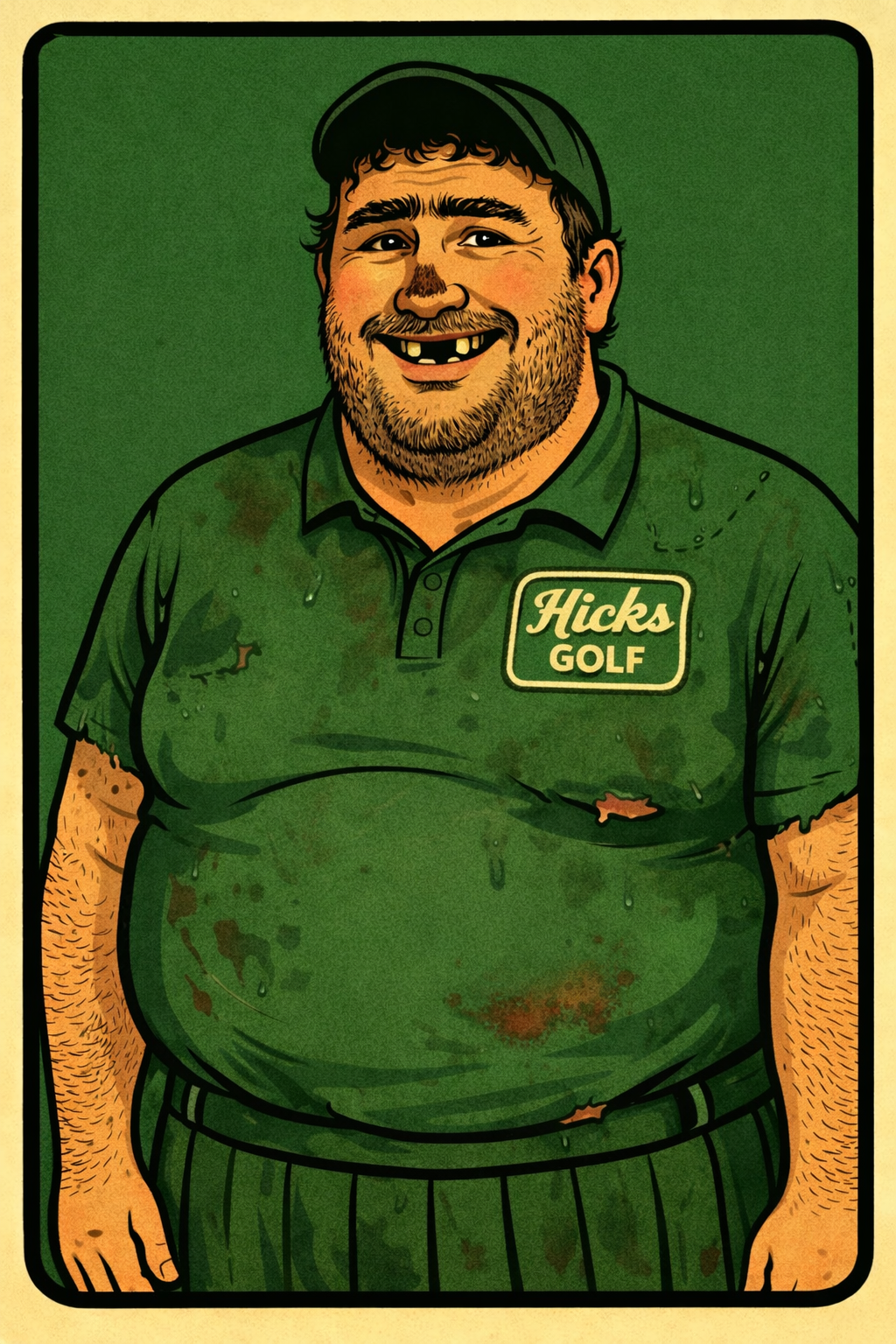 Wen he git all liqured up (wich is like... evry dang round), he be chunkin chips like he diggin fer trezzure an 4-puttin like the hole done ran away from him.